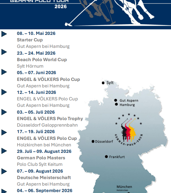Am 6. bis 7. Juni sowie am 13. und 14. Juni lädt die German Polo Tour an diesem Standort zu zwei unvergesslichen Wochenenden voller Action, Eleganz und besonderer Atmosphäre ein.