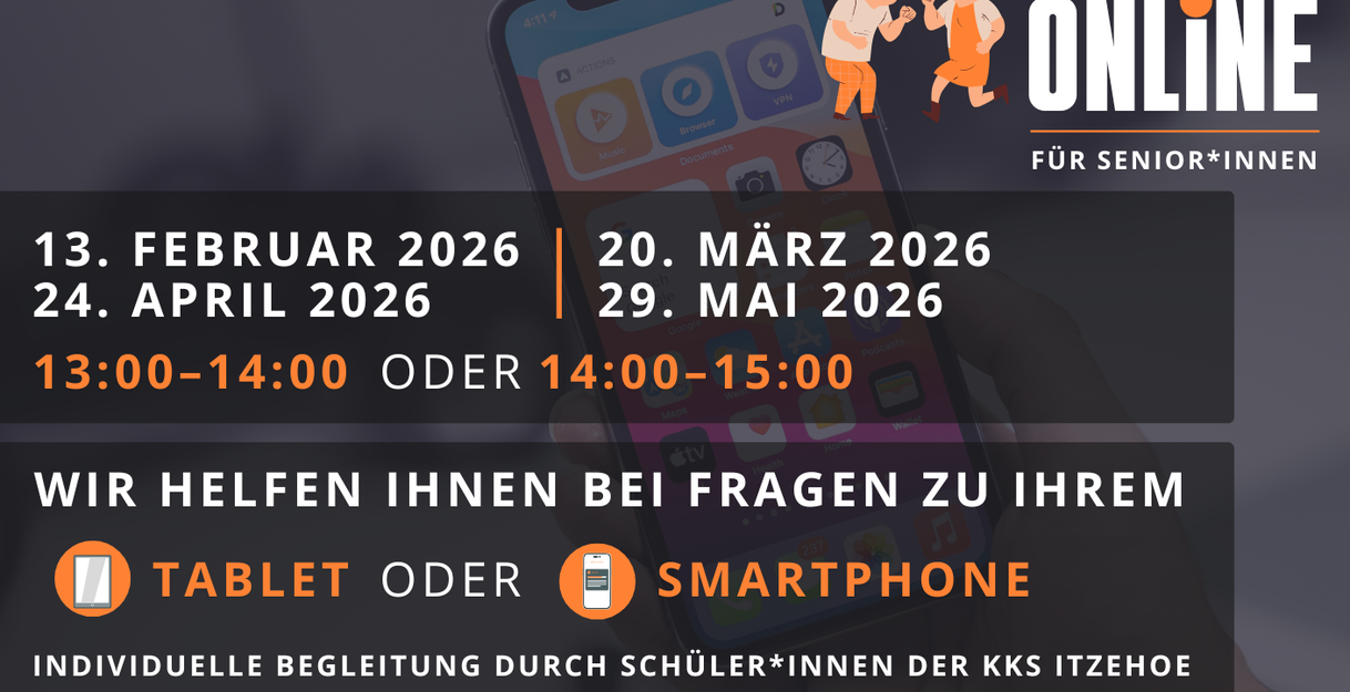 In entspannter Atmosphäre haben die Teilnehmer*innen die Möglichkeit, individuelle Fragen rund um Smartphone oder Tablet zu klären. Unterstützt werden sie dabei von den engagierten und technikaffinen Schüler*innen der KKS Itzehoe, die in Zweier-Teams hilfreiche Tipps geben und die Funktionen der Geräte verständlich und geduldig erklären.