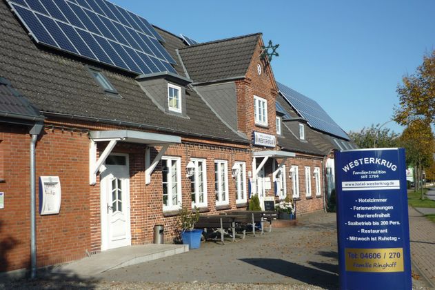 The Landguthotel Westerkrug in Wanderup is a historical gem that has been combining tradition and comfort since 1784. With over 240 years of hospitality, it is a living testimony to the region's history. The modern, cozy rooms, including a barrier-free option, are equipped with all the amenities that make a stay pleasant. The Dehoga certification underlines the quality of the accommodation. The cuisine at the Landguthotel Westerkrug is another highlight. It offers a variety of regional specialties, from traditional dishes such as sour meat made according to a family recipe, pan-fried fish with mustard sauce or matjes fillet to hearty schnitzel variations. Gourmets are also spoiled with beef rump steak or salmon fillet. The convenient location of the Landguthotel Westerkrug in Wanderup, between the North Sea and Baltic Sea, makes it the ideal starting point for excursions in the region. It is more than just a place to stay - it is a place that welcomes its guests with warm hospitality and offers an authentic experience of regional culture and history.