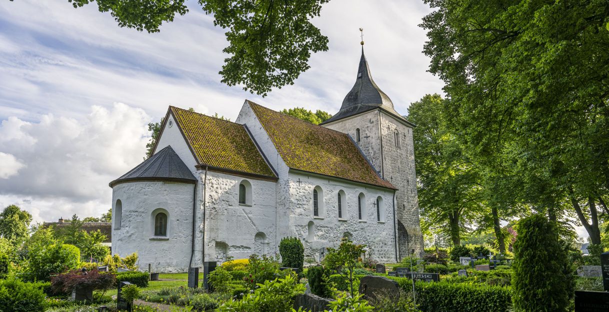 St. Peter's Church Bosau, once known as the "white marble cathedral", is a late Romanesque fieldstone church founded by Bishop Vicelin in the 12th century. Today, an oak figure of the bishop can be seen on the east wall of the choir. The church is idyllically situated on the shores of Lake Plön and is known for its white sheen, which was created by the plaster mortar from the Kalkberg mountain that was used to encase the fieldstones. Today, a coat of lime paint is used to even out the damaged plaster surfaces. St. Peter's Church in Bosau has undergone a number of changes over the centuries. During the Thirty Years' War, it was partially destroyed and rebuilt in the Baroque style, with the original round tower being converted into a square one and topped with a Baroque dome. Inside the church, the late Gothic triumphal cross and the three-winged altarpiece from the 14th century, which is considered one of the oldest oak altars in northern Germany, catch the eye. The altar shows carved scenes of the Last Judgement and during Passiontide the portraits on the back of the altar can be seen.
