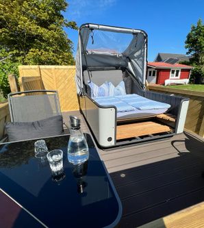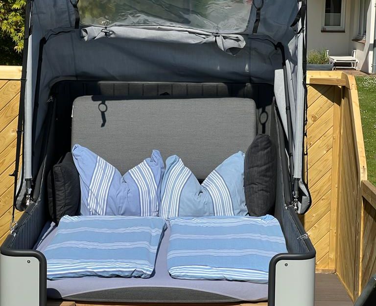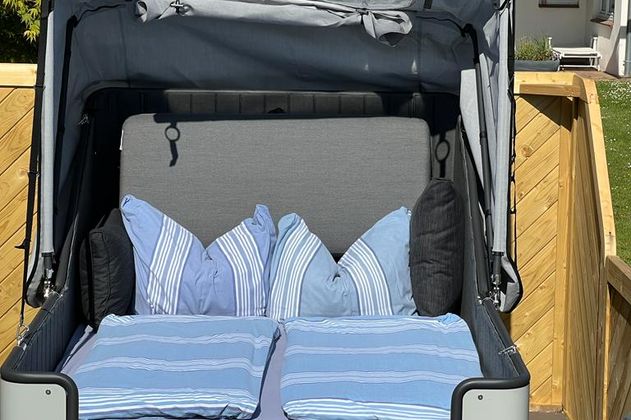 Der Schlafstrandkorb - eine einzigartige Möglichkeit, die Natur hautnah zu erleben. Unter dem Sternenhimmel schlafen und den Sonnenaufgang über den weiten Feldern der Marsch bewundern, das ist ein Erlebnis, das man nicht so schnell vergisst. Der Schlafstrandkorb befindet sich in einem Garten, der einen malerischen Blick auf die Marschfelder bietet. Er ist von einer kleinen Holzterrasse umgeben, die ein Gefühl von Geborgenheit und Schutz vermittelt. Mit seinen Maßen von 1,40 Meter Breite und 2,40 Meter Länge bietet er ausreichend Platz für zwei Erwachsene. Zur Ausstattung gehören zwei Stühle und ein Tisch, Bettzeug und Handtücher. Sanitäre Einrichtungen sowie WLAN sind ebenfalls vorhanden. Bei Wind und leichtem Regen bietet eine wetterfeste Persenning mit Fenstern Schutz. Die Fenster können abgedunkelt werden, um die Privatsphäre zu gewährleisten. Ein besonderes Highlight ist die Möglichkeit, ein Frühstück im nahegelegenen "Blauen Haus" hinzuzubuchen. So beginnt der Tag mit einem kulinarischen Genuss, bevor man sich auf neue Abenteuer begibt. Der Schlafstrandkorb - eine einzigartige Erfahrung, die man sich nicht entgehen lassen sollte.