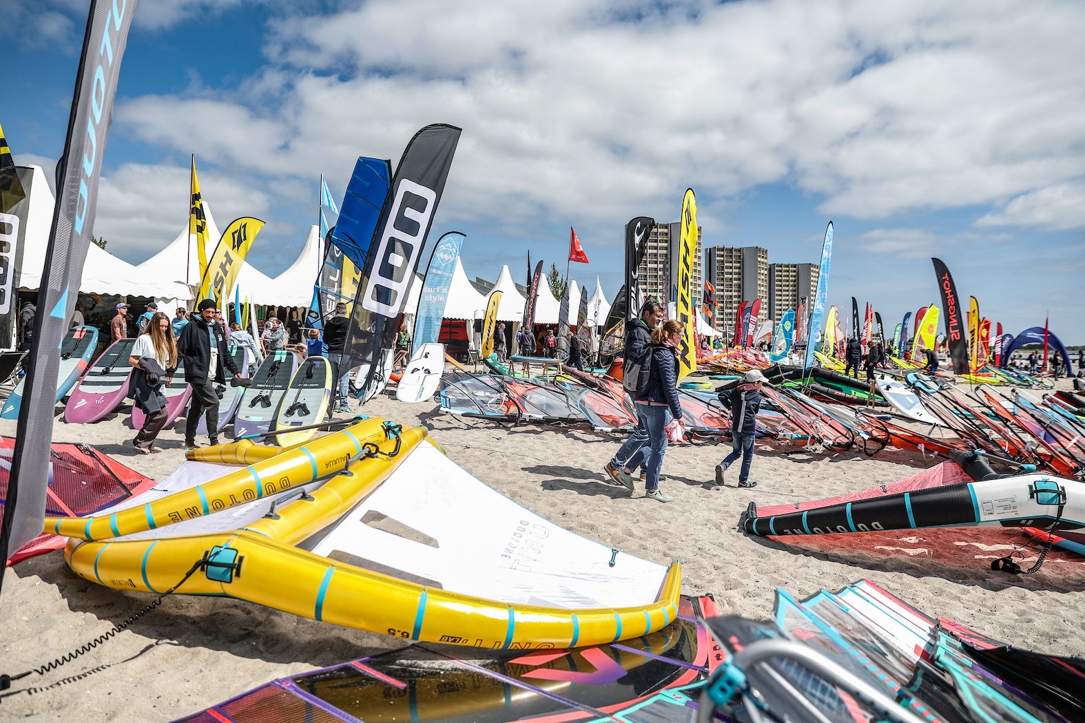 Der sportliche Auftakt beginnt am Donnerstag ab 12 Uhr (abhängig von Wind und Wellen) mit dem ersten Start des Regattafeldes und endet am Sonntagnachmittag mit der hochspannenden Siegerehrung. Zudem stehen mindestens drei Pump Foil Startrampen zur Verfügung, um bei Windflaute aufregende Pump Foil Fun Contests abzuhalten. Das Foil Festival wird auch in diesem Jahr Gastgeber der weltgrößten WingFoil Strandmesse sein, bei der 43 Wing-, Foil- und Boardhersteller vertreten sind. Diverse Wing & Foil Hersteller bieten Besuchern die Möglichkeit, ihr Equipment kostenlos zu testen. Alles, was Ihr benötigt, ist ein gültiger Personalausweis, Reisepass oder Führerschein, um Material im Testcenter auszuleihen und gründlich zu testen. Außerdem könnt Ihr vor Ort auch wieder Crashkurse besuchen, um die Grundlagen des WingFoilens zu erlernen.