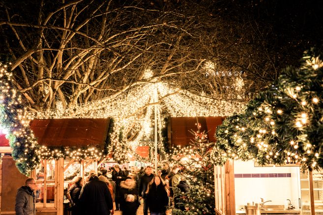 Mit frisch überarbeitetem Auftritt präsentiert sich der Weihnachtsmarkt auf dem Holstenplatz und lockt die Besucher*innen traditionell zum winterlichen Bummel bei ausgewogenem Mix aus Kunsthandwerk, Punsch und Leckerbissen.